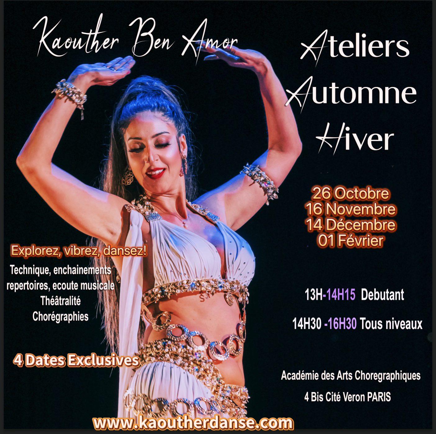 4 dates exclusives, 4 ateliers thématiques qui vous attendent pour parfaire votre technique et explorer encore le plaisir de la Danse Orientale !